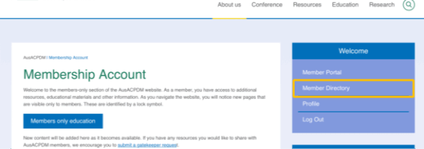 Click on ‘Member Directory’ in the ‘Member Portal’ page to view the profiles of members who have made their profiles available.